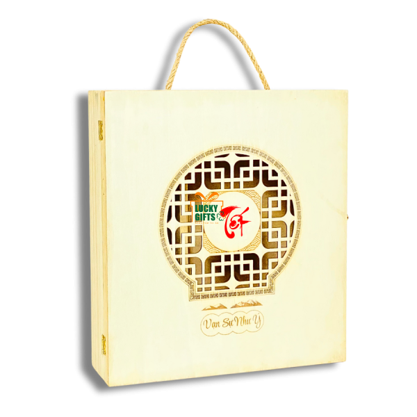 Hộp gỗ đựng quà Tết - logo decal tết đỏ -Vạn sự như ý