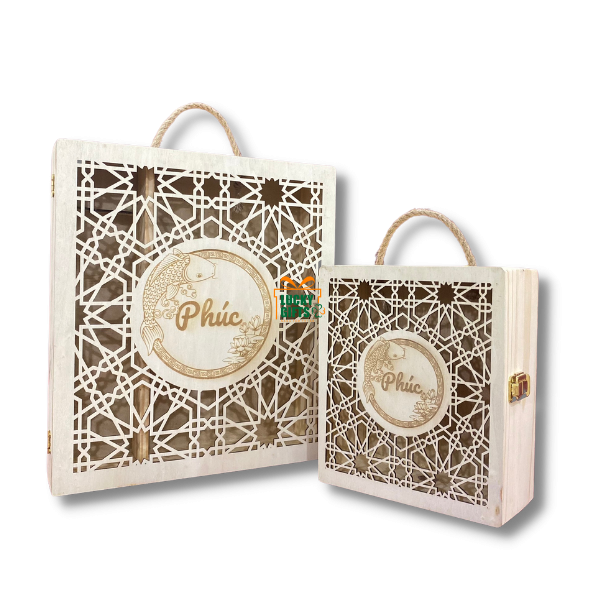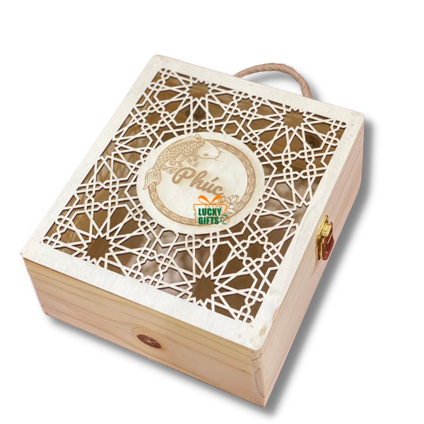 Hộp gỗ quà tết khắc laser theo yêu cầu -Phúc