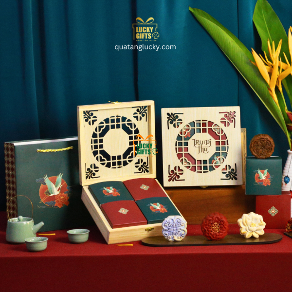 Lucky Gifts giới thiệu BST Hộp Quà Tặng Trung Thu Doanh Nghiệp 2025 – Mộc Nguyệt Giao Hoà, kết hợp hoàn hảo giữa thiết kế hộp gỗ thủ công cao cấp và bánh Trung Thu ngon – ít ngọt – tốt cho sức khoẻ.