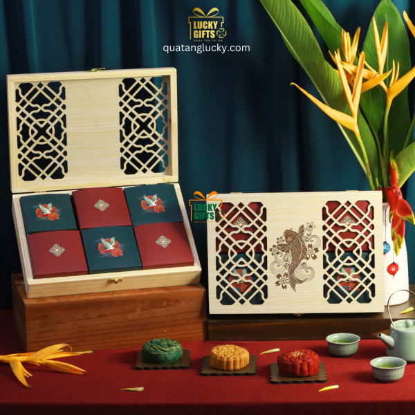 Lucky Gifts giới thiệu BST Hộp Quà Tặng Trung Thu Doanh Nghiệp 2025 – Mộc Nguyệt Giao Hoà, kết hợp hoàn hảo giữa thiết kế hộp gỗ thủ công cao cấp và bánh Trung Thu ngon – ít ngọt – tốt cho sức khoẻ.