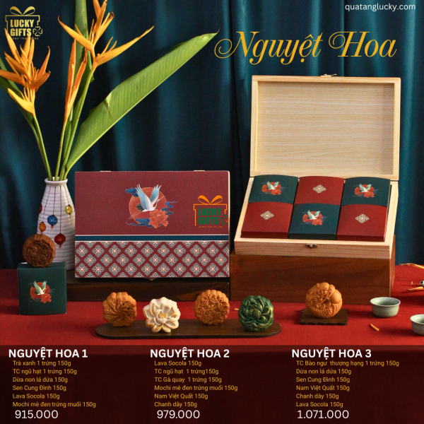 NGUYỆT HOA 1 - Quà trung thu 6 bánh - Hộp gỗ in UV cao cấp