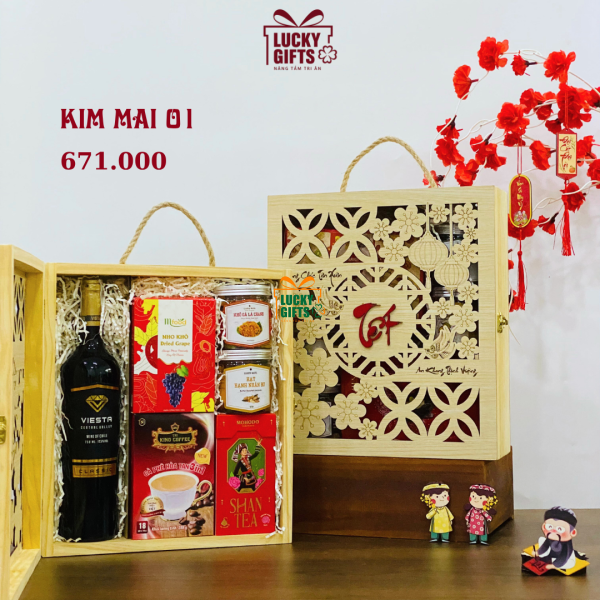 Quà tết 2026 hộp gỗ khắc laze - Kim Mai 01