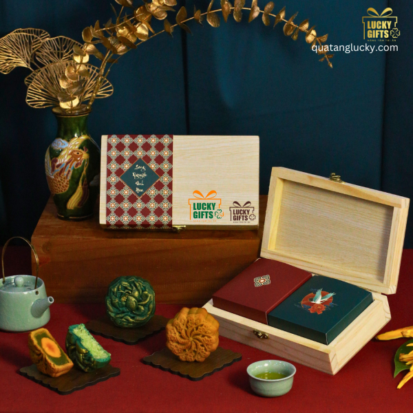 Ngoài Song Nguyệt, Lucky Gifts còn cung cấp đa dạng mẫu hộp quà Trung Thu cao cấp bằng gỗ chắc chắn độc đáo như: